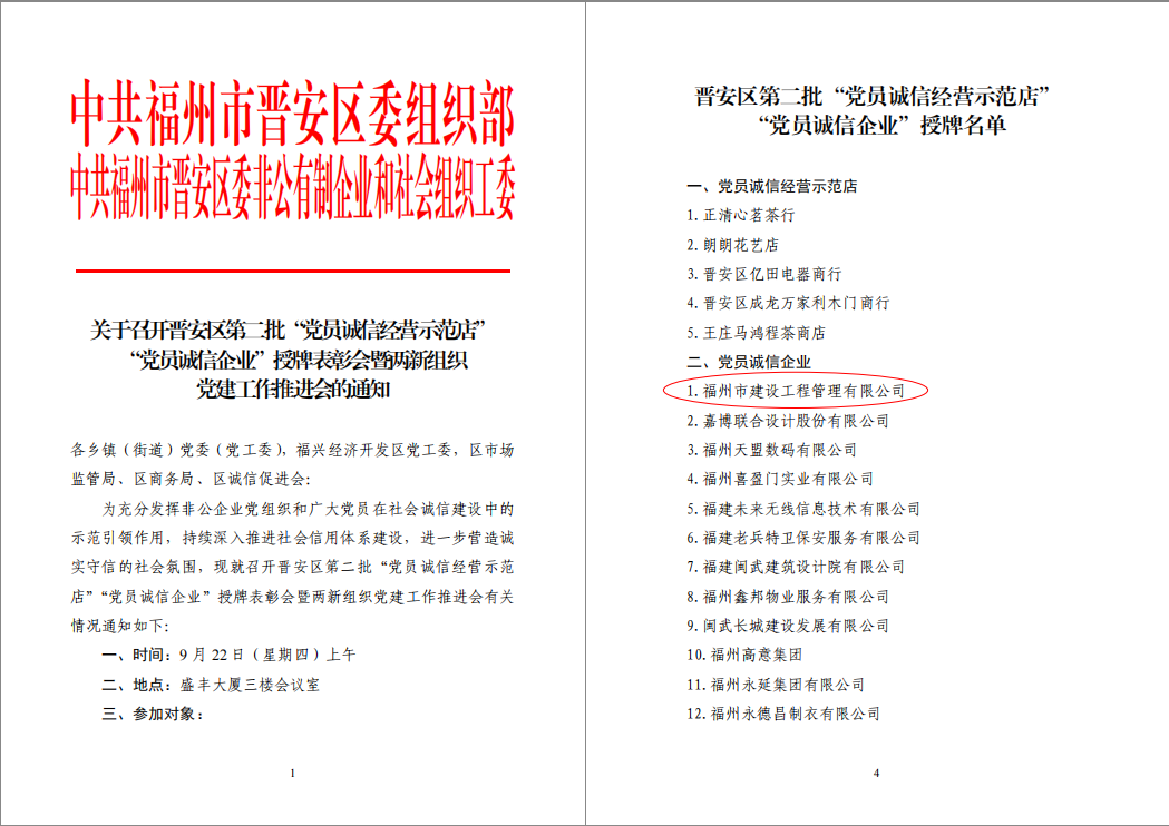 9月22日上午,晉安區(qū)委組織部等部門聯(lián)合舉辦晉安區(qū)第二批“黨員誠信示范店”“黨員誠信企業(yè)”授牌表彰會(huì),我司榮獲“黨員誠信企業(yè)”榮譽(yù)稱號(hào)。這個(gè)稱號(hào)是對(duì)我司長期以來誠信經(jīng)營的肯定,也是對(duì)我們今后堅(jiān)持誠信合法經(jīng)營的一種鞭策。